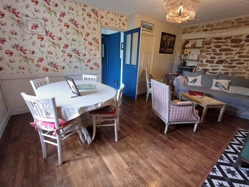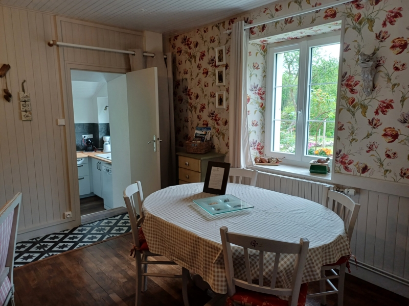 Dans une autre partie de cette pièce, non loin de la cuisine, tout autre décor pour prendre vos repas autour d’une table, tout en observant la nature par la fenêtre du coin repas.