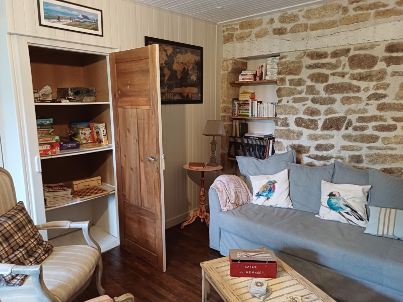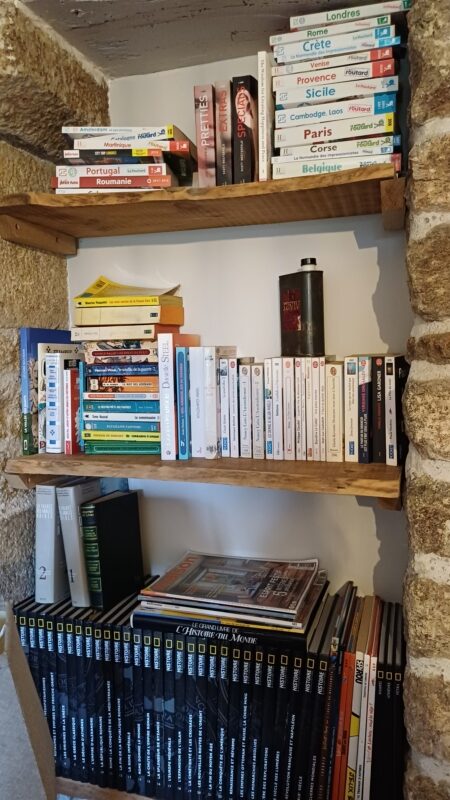 Dans la bibliothèque qui habille le mur de pierres de granit, des guides, des brochures, des livres, des plans sont à votre disposition pour mieux connaître notre belle région et pour peut-être découvrir, redécouvrir des ouvrages, des romans, l’histoire de France ….
